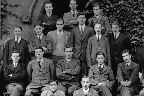 Novato en Oxford. T. S. Eliot –de pie, segundo a la izquierda de la segunda hilera– con sus compañeros del Merton College, Oxford, circa octubre de 1914. Fotografía de la Colección de Literatura Inglesa y Norteamericana de Henry W. y Albert A. Berg. Biblioteca Pública de Nueva York.