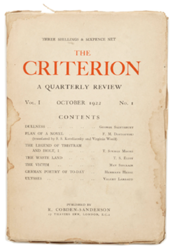 The Waste Land se publicó por primera vez en Inglaterra en el número de octubre de 1922 de The Criterion. Fuente: Bonhams.